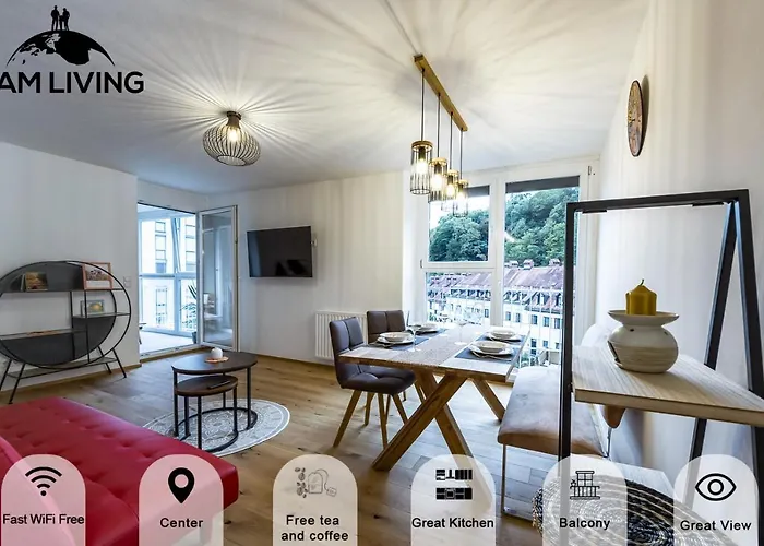 Located a 6-minute walk from Ljubljana Old Town, the spacious 80 m^2 Tamliving Ljubljana 2Br Center 3 Bridges Great View Kitchen Apartment provides guests with a cash machine and a lift, and views of the city. The 1-bedroom apartment is only a few metres from the pedestrian Dragon Bridge, and Triple Bridge is also a 6-minute walk away.